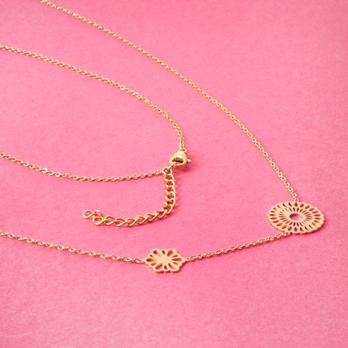 Naszyjnik z mini zawieszkami ze stali chirurgicznej kółka ażurowe w kolorze złotym 41cm