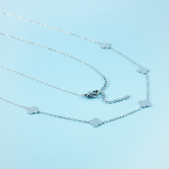 Naszyjnik z mini zawieszkami ze stali chirurgicznej koniczyna marokańska w kolorze srebrnym 40,5cmTo starannie wykonany produkt ze stali chirurgicznej 316L, który dobrze prezentuje się w codziennym użytkowaniu. Stal chirurgiczna 316L dobrze sprawdza się w biżuterii noszonej na co dzień, ponieważ łączy trwałość z estetycznym wykończeniem.Naszyjnik ze stali chirurgicznej 316L to gotowy element biżuterii lub baza do dalszego personalizowania, w zależności od konstrukcji produktu. Dobrze sprawdza się w codziennym noszeniu i pozwala łatwo dopasować styl projektu do pozostałych dodatków.Rozmiar
