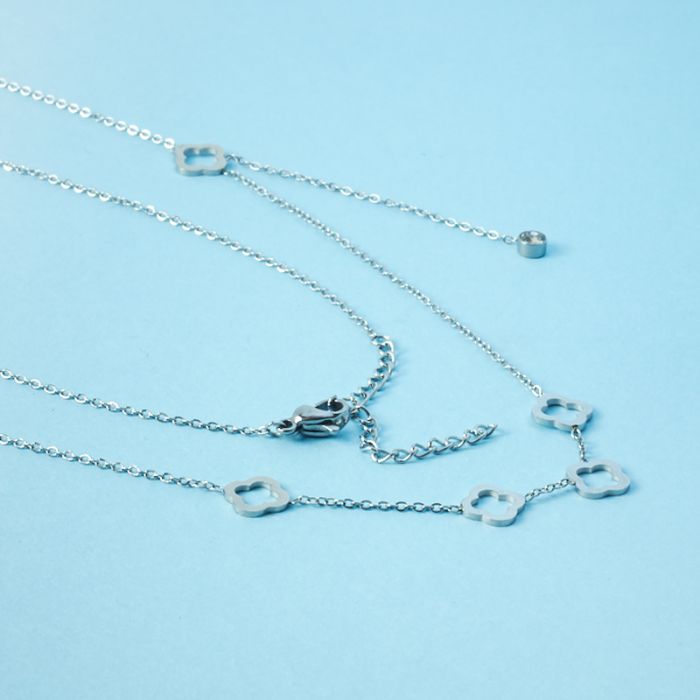 Naszyjnik z mini zawieszkami ze stali chirurgicznej koniczynka marokańska w kolorze srebrnym 40,5cm