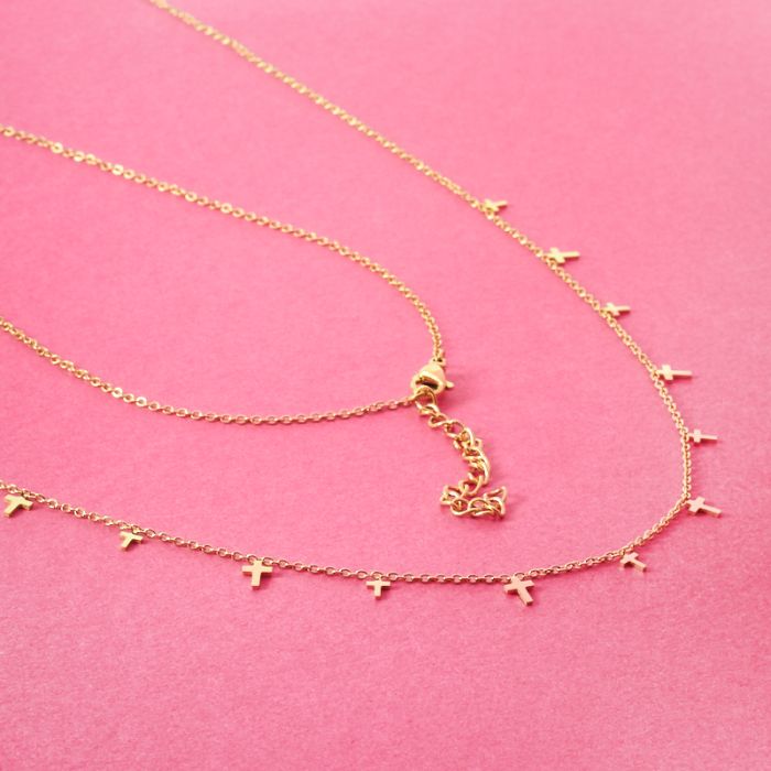 Naszyjnik z mini zawieszkami ze stali chirurgicznej krzyżykami w kolorze złotym 40cm