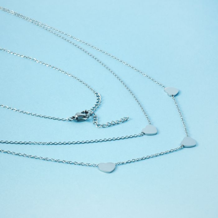Naszyjnik z mini zawieszkami ze stali chirurgicznej serca w kolorze srebrnym 40cm