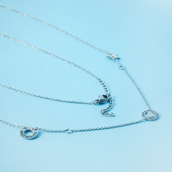 Naszyjnik z mini zawieszkami ze stali chirurgicznej serce gwiazdka kółko w kolorze srebrnym 42cmTo dopracowany produkt ze stali chirurgicznej 316L, który łączy praktyczność z estetycznym wyglądem. W biżuterii handmade stal chirurgiczna 316L jest ceniona za dobry wygląd, odporność na korozję i wygodę codziennego użytkowania.Naszyjnik ze stali chirurgicznej 316L to gotowy element biżuterii lub baza do dalszego personalizowania, w zależności od konstrukcji produktu. Dobrze sprawdza się w codziennym noszeniu i pozwala łatwo dopasować styl projektu do pozostałych dodatków.Rozmiar