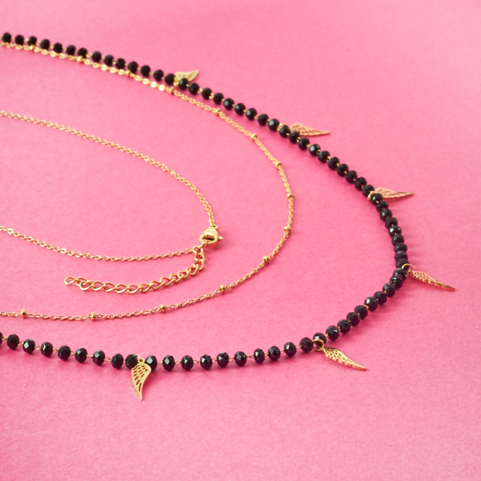 Naszyjnik z mini zawieszkami ze stali chirurgicznej skrzydełka z kryształkami w kolorze złotym 41cmTo estetyczny element biżuteryjny ze stali chirurgicznej 316L, chętnie wybierany do nowoczesnych projektów. Stal chirurgiczna 316L dobrze sprawdza się w biżuterii noszonej na co dzień, ponieważ łączy trwałość z estetycznym wykończeniem.Naszyjnik ze stali chirurgicznej 316L to gotowy element biżuterii lub baza do dalszego personalizowania, w zależności od konstrukcji produktu. Dobrze sprawdza się w codziennym noszeniu i pozwala łatwo dopasować styl projektu do pozostałych dodatków.Rozmiar