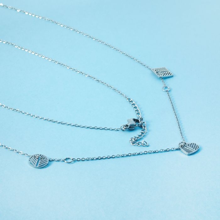 Naszyjnik z mini zawieszkami ze stali chirurgicznej zawieszki ażurowe w kolorze srebrnym 42,5cm