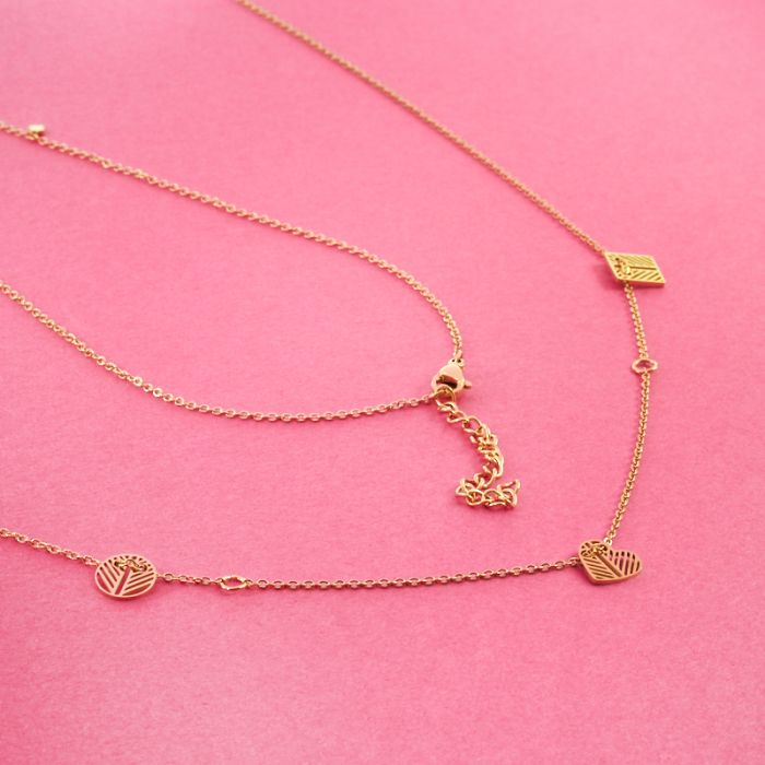 Naszyjnik z mini zawieszkami ze stali chirurgicznej zawieszki ażurowe w kolorze złotym 42,5cm