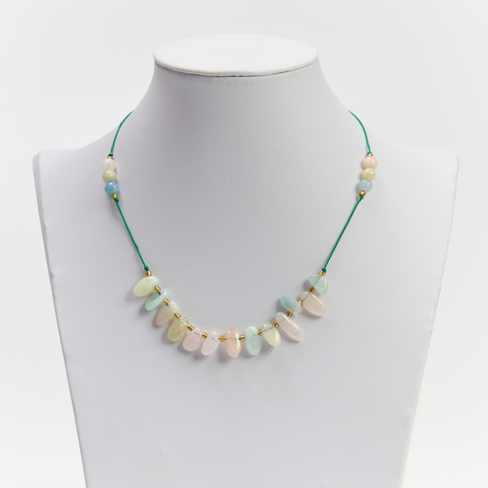 Naszyjnik z morganitem na nici jedwabnej
