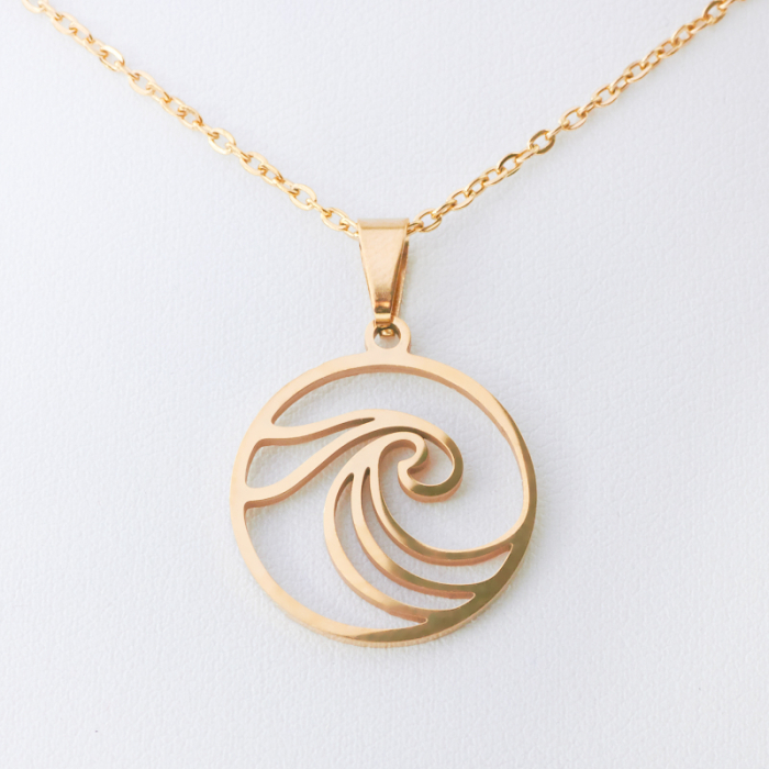 Naszyjnik ze stali chirurgicznej fala w kółku w kolorze złotym 45cm