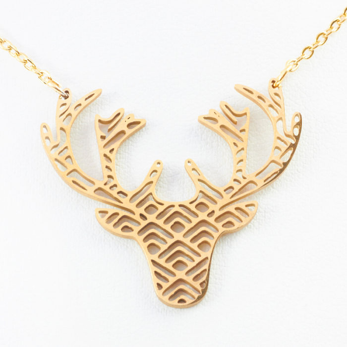 Naszyjnik ze stali chirurgicznej jeleń w kolorze złotym 48cmTo estetyczny element biżuteryjny ze stali chirurgicznej 316L, chętnie wybierany do nowoczesnych projektów. To materiał chętnie wybierany do biżuterii handmade ze względu na trwałość, estetykę i wygodę użytkowania.Naszyjnik ze stali chirurgicznej 316L to gotowy element biżuterii lub baza do dalszego personalizowania, w zależności od konstrukcji produktu. Dobrze sprawdza się w codziennym noszeniu i pozwala łatwo dopasować styl projektu do pozostałych dodatków.Rozmiar