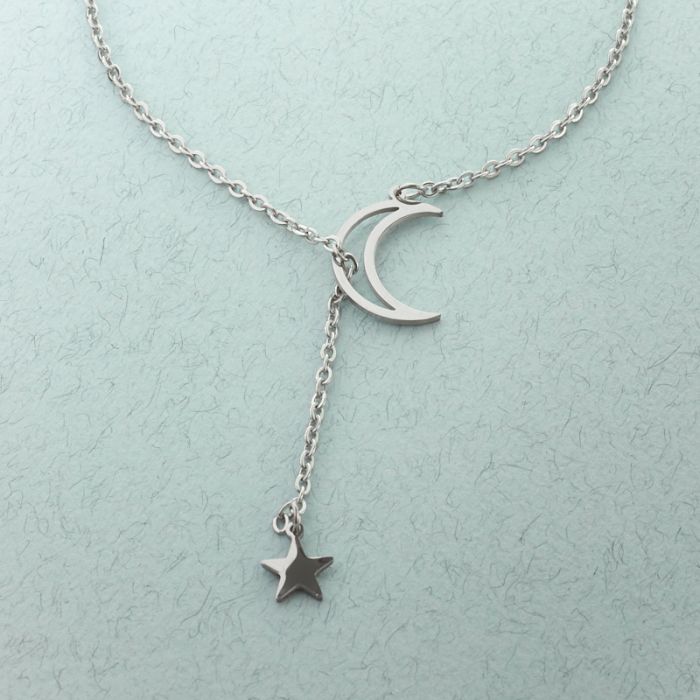 Naszyjnik ze stali chirurgicznej księżyc z gwiazdką w kolorze srebrnym 63cm