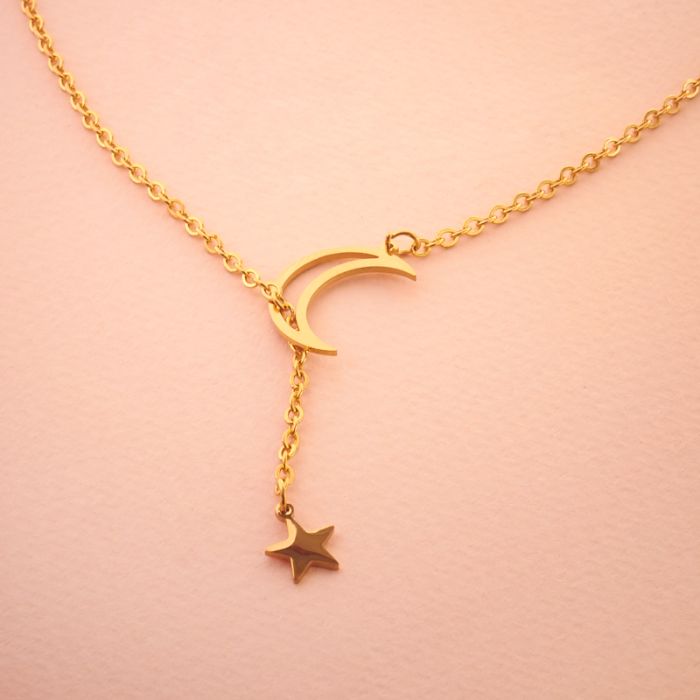 Naszyjnik ze stali chirurgicznej księżyc z gwiazdką w kolorze złotym 63cm