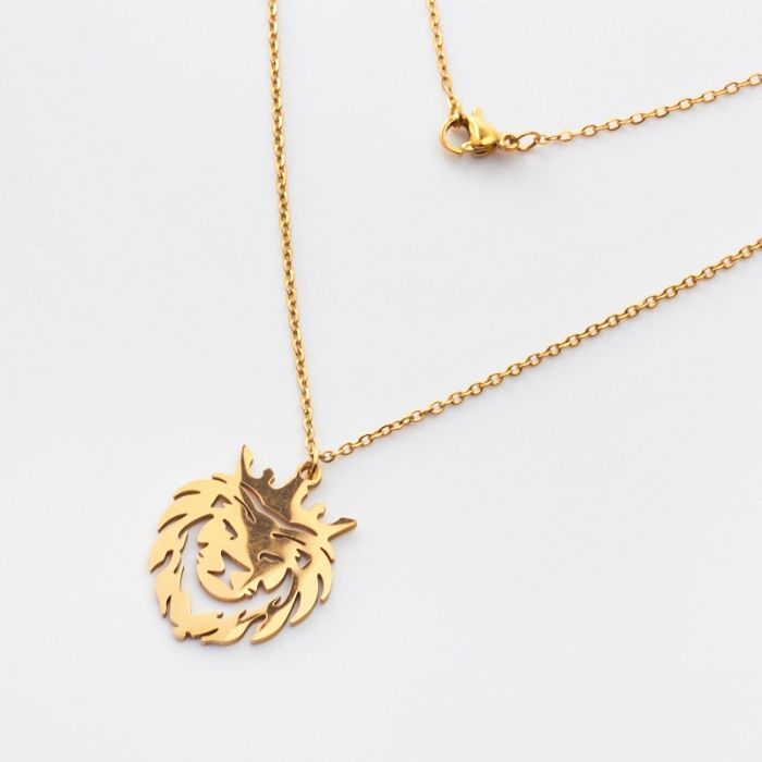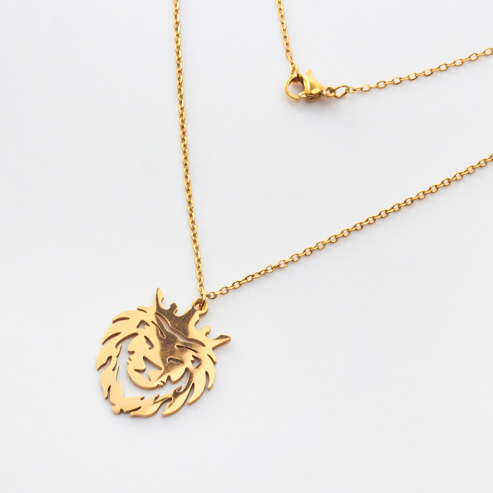 Naszyjnik ze stali chirurgicznej lew w koronie w kolorze złotym 45cm