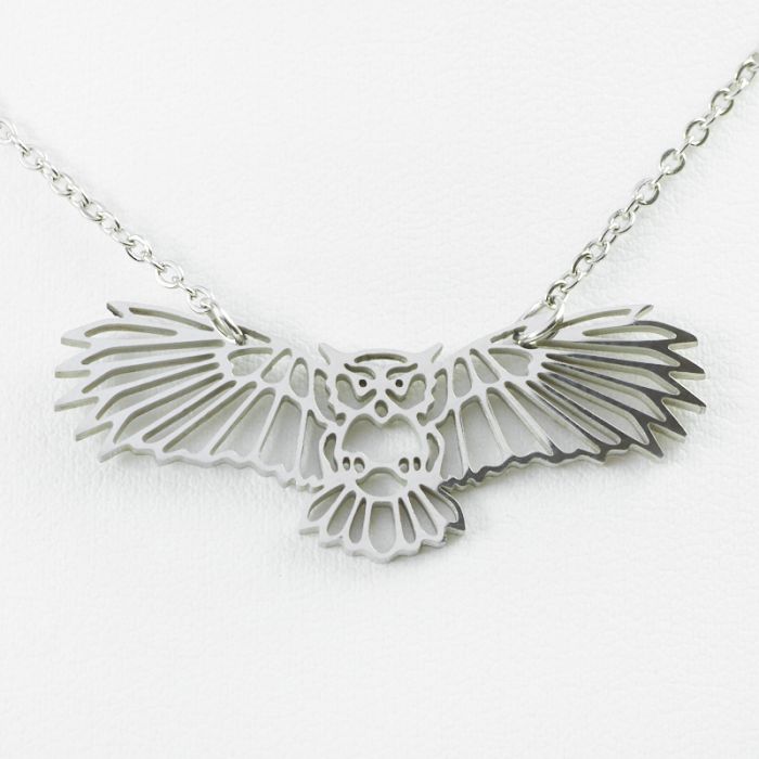 Naszyjnik ze stali chirurgicznej sowa w kolorze srebrnym 48cm