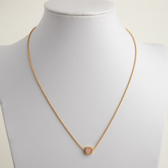 Naszyjnik ze stali chirurgicznej w kolorze złotym z koralikiem z sercem