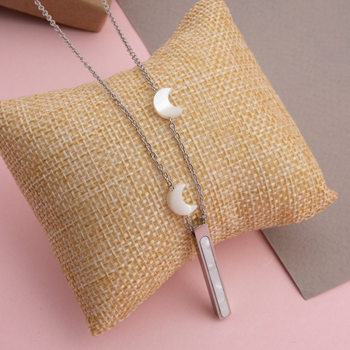Naszyjnik ze stali chirurgicznej z masą perłową