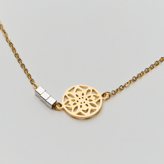 Naszyjnik ze stali z ażurową przekładką