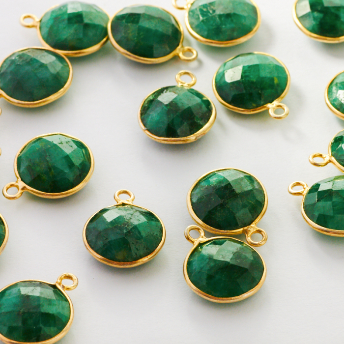 Nefryt krążek fasetowany w okuciu pozłacanym AG925 12mm