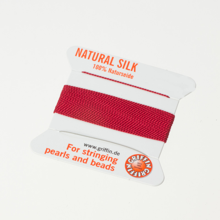 Nić jedwabna Griffin 0,5 mm w kolorze czerwony to dobry wybór do projektów, w których liczy się naturalny wygląd, płynne układanie się nici i wygodne nawlekanie.