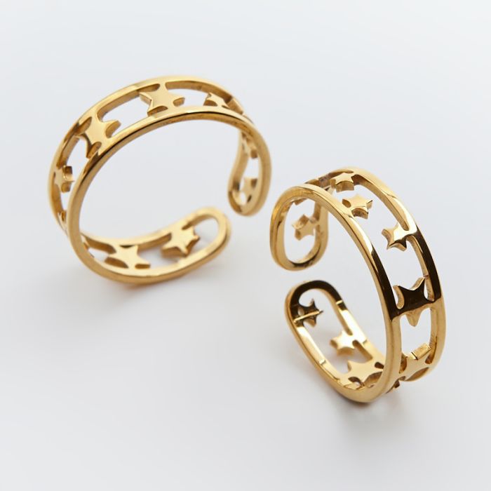 Obrączka regulowana ze stali chirurgicznej z gwiazdkami w kolorze złotym 20mm