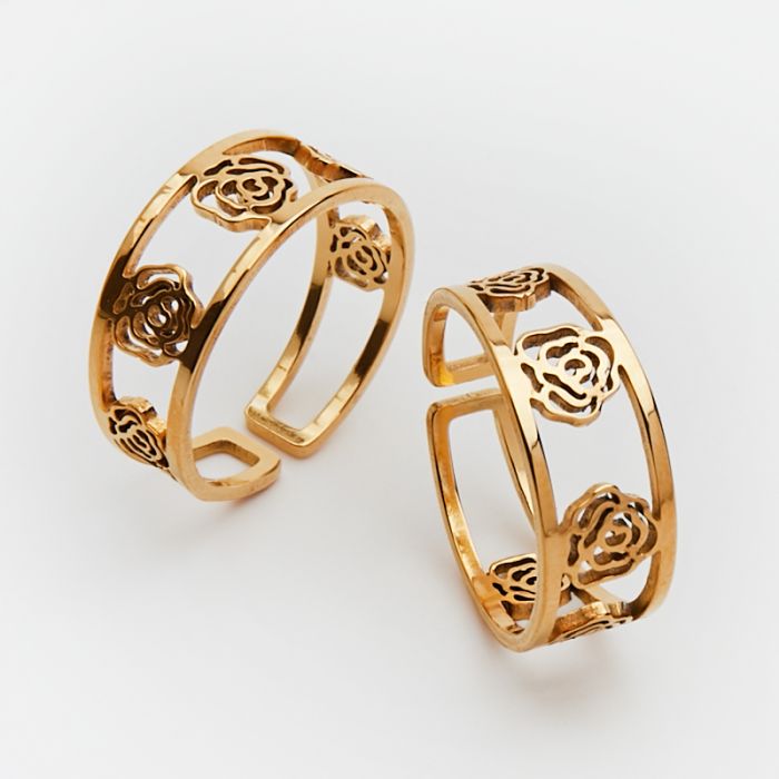 Obrączka regulowana ze stali chirurgicznej z różą w kolorze złotym 20mm