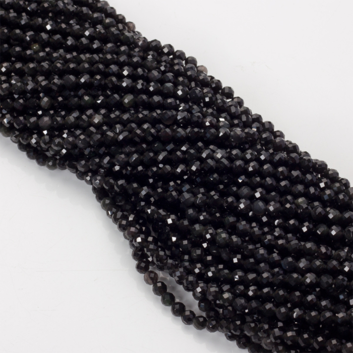 Obsydian srebrzysty kulki fasetowane 4mm - na sznurze