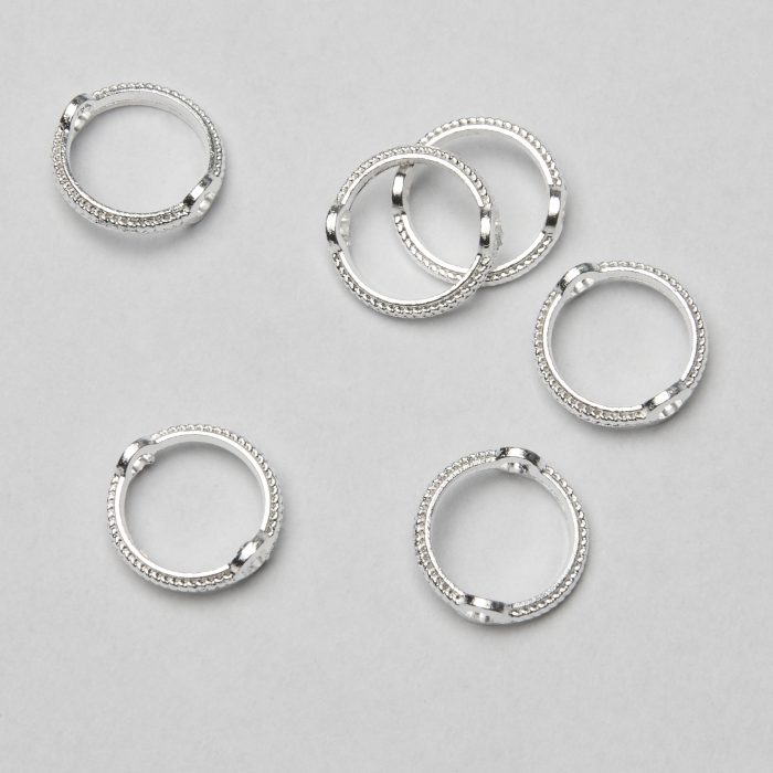 Subtelna ramka do oprawy koralików, która porządkuje kompozycję i podbija połysk elementu. Wersja w kolorze srebrnym, wykonana ze stopu metalu. Średnica wewnętrzna 8 mm eksponuje koralik i stabilizuje go w kolczykach, bransoletkach i naszyjnikach.