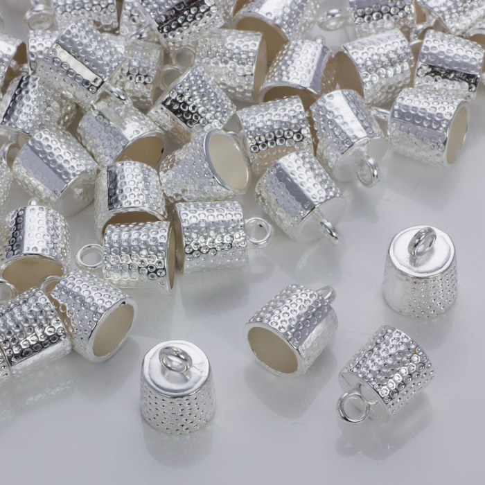 Okrągłe końcówki w kolorze srebrnym z kropeczkami 9mm