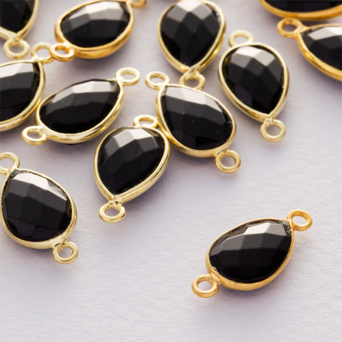 Onyks fasetowany łezka łącznik w okuciu pozłacanym AG925 12x8mm