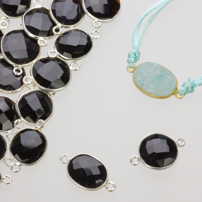 Onyks fasetowany w okuciu srebrnym AG925 z dwoma oczkami 10mm