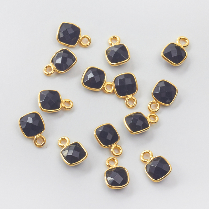 Onyks kwadrat fasetowany w srebrnym okuciu AG925 pozłacany 6mm