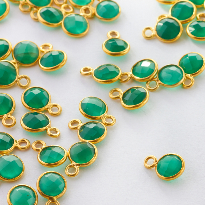 Onyks zielony krążek fasetowany w okuciu zawieszka AG925 6mm
