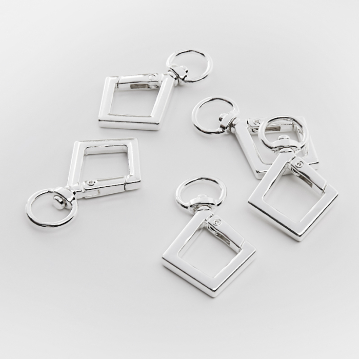 Ozdobny karabińczyk kopnięty kwadrat w kolorze srebrnym 4,5cm