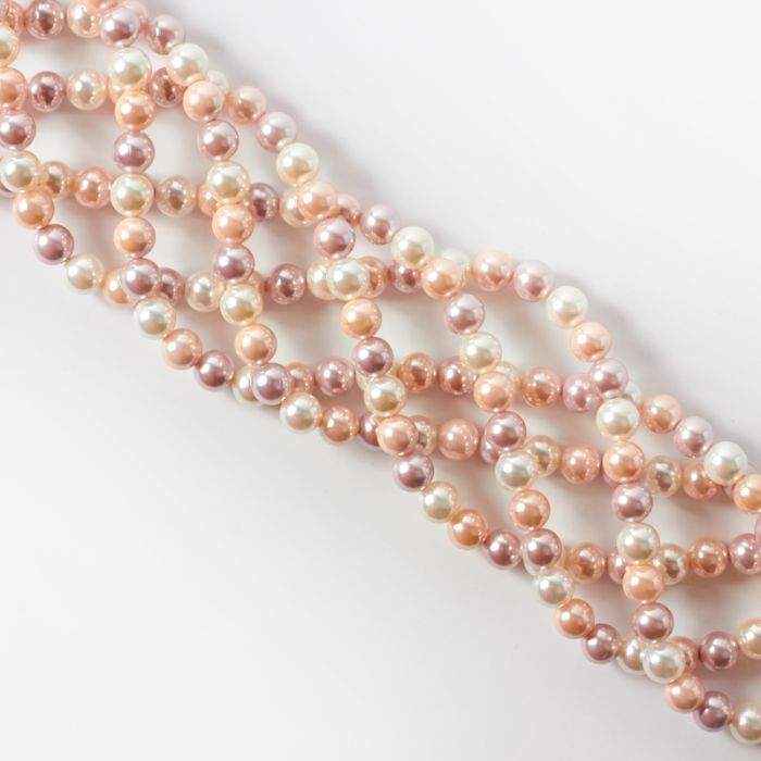 Perły seashell kulka różowo biała 6mm