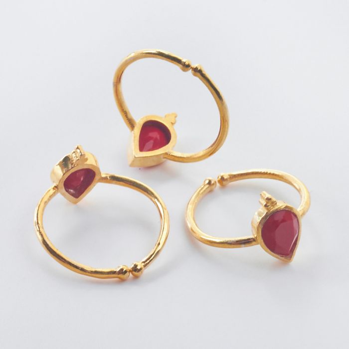 Pierścionek regulowany z czerwonym koralem pozłacany AG925 20mm