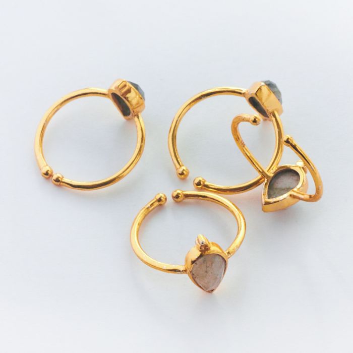 Pierścionek regulowany z labradorytem pozłacany AG925 20mm
