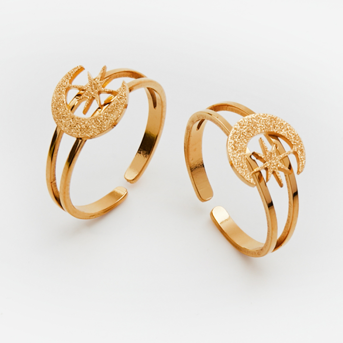Pierścionek regulowany ze stali chirurgicznej z księzycem i gwiazdą w kolorze złotym 20mm