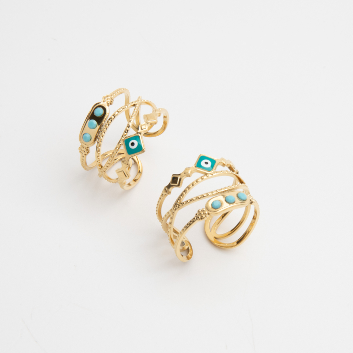 pierścionek z niebieskim oczkiem w kolorystyce