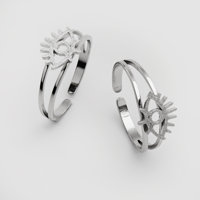 Pierścionek regulowany ze stali chirurgicznej z okiem proroka w kolorze srebrnym 20mm