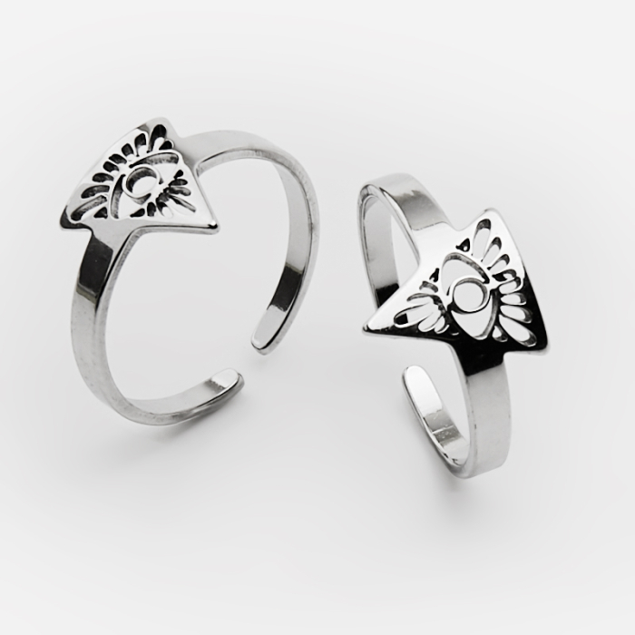 Pierścionek regulowany ze stali chirurgicznej z okiem proroka w kolorze srebrnym 20mm