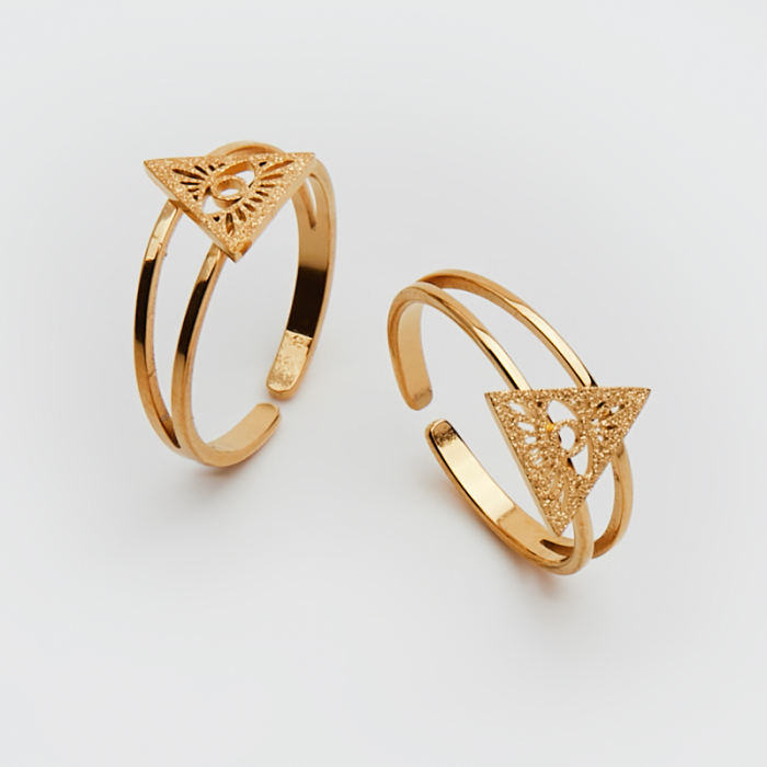 Pierścionek regulowany ze stali chirurgicznej z okiem proroka w kolorze złotym 20mm