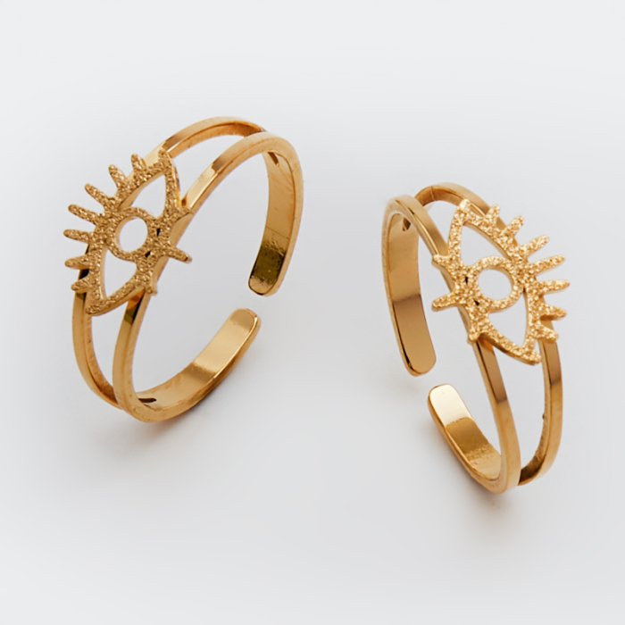 Pierścionek regulowany ze stali chirurgicznej z okiem proroka w kolorze złotym 20mmTo starannie wykonany produkt ze stali chirurgicznej 316L, który dobrze prezentuje się w codziennym użytkowaniu. W biżuterii handmade stal chirurgiczna 316L jest ceniona za dobry wygląd, odporność na korozję i wygodę codziennego użytkowania.Pierścionek ze stali chirurgicznej 316L to trwały element biżuterii, który można wykorzystać jako gotowy dodatek lub bazę do bardziej dekoracyjnych projektów. W zależności od formy dobrze prezentuje się zarówno solo, jak i w zestawieniu z inną biżuterią.Rozmiar