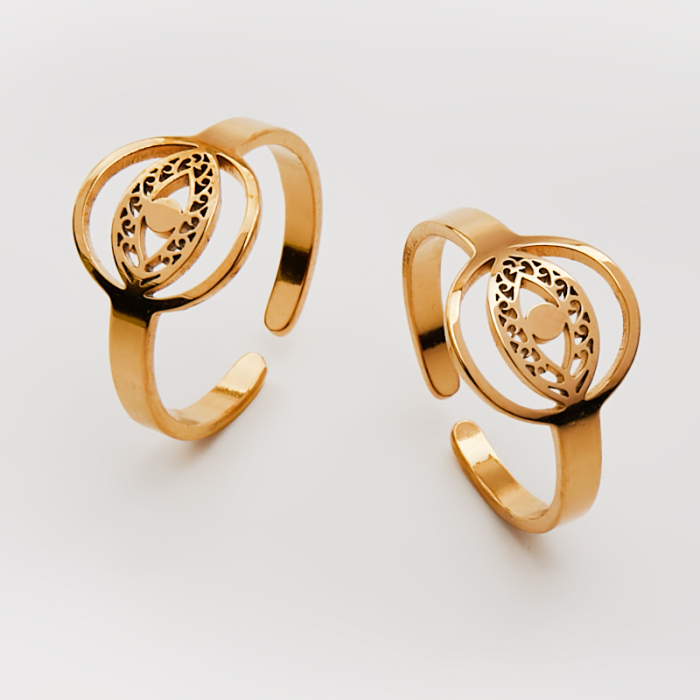 Pierścionek regulowany ze stali chirurgicznej z okiem proroka w kolorze złotym 20mmTo starannie wykonany produkt ze stali chirurgicznej 316L, który dobrze prezentuje się w codziennym użytkowaniu. W biżuterii handmade stal chirurgiczna 316L jest ceniona za dobry wygląd, odporność na korozję i wygodę codziennego użytkowania.Pierścionek ze stali chirurgicznej 316L to trwały element biżuterii, który można wykorzystać jako gotowy dodatek lub bazę do bardziej dekoracyjnych projektów. W zależności od formy dobrze prezentuje się zarówno solo, jak i w zestawieniu z inną biżuterią.Rozmiar