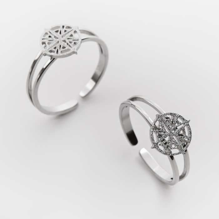 Pierścionek regulowany ze stali chirurgicznej z różą wiatrów w kolorze srebrnym 20mm