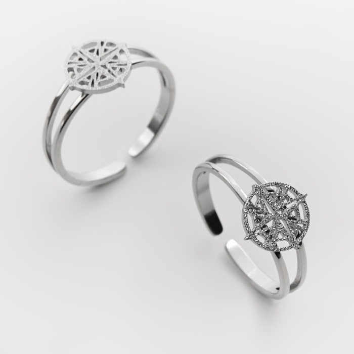 Pierścionek regulowany ze stali chirurgicznej z różą wiatrów w kolorze srebrnym 20mmTo dopracowany produkt ze stali chirurgicznej 316L, który łączy praktyczność z estetycznym wyglądem. To materiał chętnie wybierany do biżuterii handmade ze względu na trwałość, estetykę i wygodę użytkowania.Pierścionek ze stali chirurgicznej 316L to trwały element biżuterii, który można wykorzystać jako gotowy dodatek lub bazę do bardziej dekoracyjnych projektów. W zależności od formy dobrze prezentuje się zarówno solo, jak i w zestawieniu z inną biżuterią.Rozmiar
