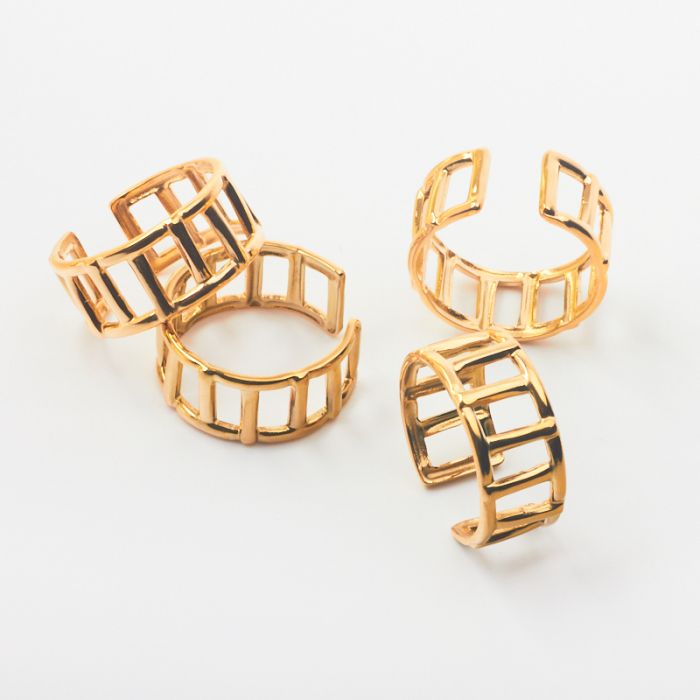 Pierścionek ze stali chirurgicznej regulowany drabinka w kolorze złotym 21mm