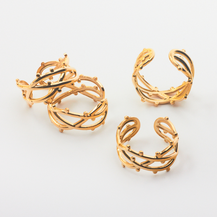 Pierścionek ze stali chirurgicznej regulowany fale z kuleczkami w kolorze złotym 20,5mm