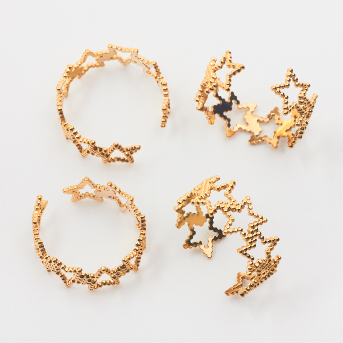 Pierścionek ze stali chirurgicznej regulowany gwiazdki w kolorze złotym 19,5mmTo estetyczny element biżuteryjny ze stali chirurgicznej 316L, chętnie wybierany do nowoczesnych projektów. To materiał chętnie wybierany do biżuterii handmade ze względu na trwałość, estetykę i wygodę użytkowania.Pierścionek ze stali chirurgicznej 316L to trwały element biżuterii, który można wykorzystać jako gotowy dodatek lub bazę do bardziej dekoracyjnych projektów. W zależności od formy dobrze prezentuje się zarówno solo, jak i w zestawieniu z inną biżuterią.Rozmiar