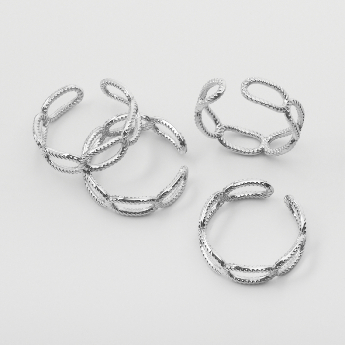 Pierścionek ze stali chirurgicznej regulowany karbowane owale 20,5mm