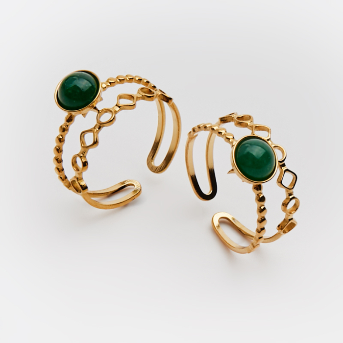 Pierścionek ze stali chirurgicznej z awenturynem w kolorze złotym 18mmTo trwały element biżuterii lub półfabrykat jubilerski, który dobrze sprawdza się w codziennych realizacjach. Stal chirurgiczna 316L dobrze sprawdza się w biżuterii noszonej na co dzień, ponieważ łączy trwałość z estetycznym wykończeniem.Pierścionek ze stali chirurgicznej 316L to trwały element biżuterii, który można wykorzystać jako gotowy dodatek lub bazę do bardziej dekoracyjnych projektów. W zależności od formy dobrze prezentuje się zarówno solo, jak i w zestawieniu z inną biżuterią.Rozmiar