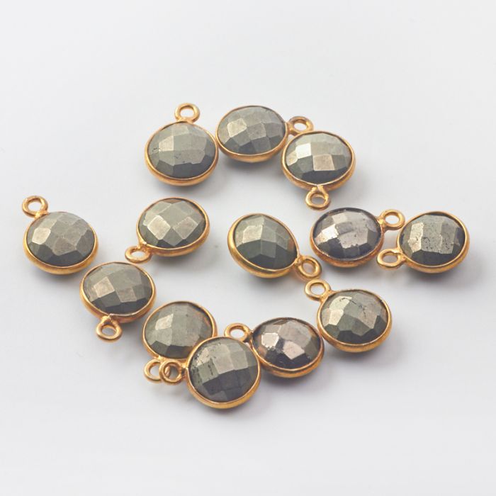 Piryt krążek fasetowany zawieszka w okuciu AG925 pozłacana 7,5mm