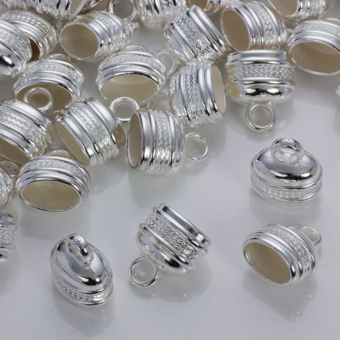 Podłużne końcówki z falkami do rzemieni w srebrnym kolorze 17x12mm